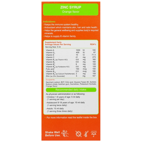 این محصول ترکیبی از زینک، ویتامین‌های گروه B، ویتامین C و تعدادی ویتامین دیگر را در خود جای داده است.