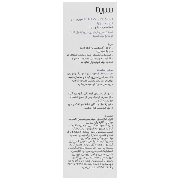 لیست ترکیبات تونیک پرومین ضد ریزش سریتا
