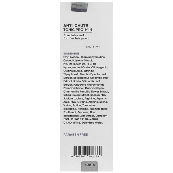 اتيل الکل دی آمینو پیریمیدین اکساید، بوتیلن گلایکول، پی پی جی-۲۶-بوتت-۲۶، پی ای جی-۴۰ روغن کرچک هیدروژنه، آپیژنین، اولئانولیک اسید، بیوتینویل تری پپتاید-ا، عصاره برگ نعناع فلفلی، عصاره برگ رزماری، عصاره برگ مریم گلی، پیریدوکسین هیدروکلراید، فنوکسی اتانول، کاپریلیل گلایکول، عصاره گل بابونه، عصاره گزنه، سدیم پی سی ای، سدیم لاکتات، آرژنین، آسپارتیک اسید، پی سی ای، گلایسین، آلانین، سرین، والین، پرولین، ترئونین، ایزولوسین، هیستیدین، فنیل آلانین، پانتنول، گلیسیرین، عصاره برگ آلوئه ورا، دي سدیم ا.د.ت.ا، رنگ کد ۱۹۱۴۰+۴۲۰۹۰، رنگ کد ۱۵۹۸۵، آب دیونیزه.