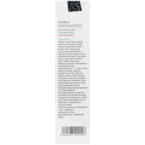 سدیم لوریل سارکوزینات، آمونیوم لورت سولفات، سدیم لوریل اتر سولفات صدفی، دسیل گلوکوزید، کوکامیدوپروپیل بتائین، گلیسیرین، عصاره عسل، عصاره میوه نارگیل، نشاسته ذرت، اسید سیتریک، صمغ زانتان، سدیم بنزوات، پتاسیم سوربات، روغن دانه ماکادمیا، پلی کواترنیوم ۱۱، سدیم پی سی ای، سدیم لاکتات، آرژنین، آسپارتیک اسید، پی سی ای، گلایسین، آلانین، سرین، والین، پرولین، ترئونین، ایزولوسین، هیستیدین، فنیل آلانین، پانتنول، عصاره برگ آلوئه ورا، گوار هیدروکسی پروپیل تریمونیوم کلراید، روغن هسته آرگان، پلی سوربات ۲۰، استایرن/آکریلات کوپلیمر، آکریلات/سی۱۰-۳۰ آلکیل آکریلات کراس پلیمر، اسانس مجاز آرایشی و بهداشتی، اسید لاکتیک، سیلیکون کواترنیوم-۱۸، تری دست-۶، تری دست-۱۲، دی سدیم ا. د. ت. آ، ۵ کلرو ۲ متیل ۴ ایزوتیازولین ۳-وان، بنزوفنون ۴، آب دیونیزه.