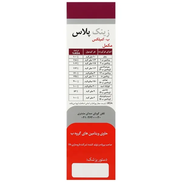 زینک 10 میلی گرمی پلاس ب کمپلکس دانا