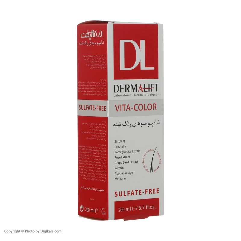 شامپو درمالیفت مخصوص موهای رنگشده یکی از محصولات لاین ویتا کالر این برند است که بهطور خاص برای شستشوی روزانه موهای رنگشده طراحی شده و با فرمولاسیون فاقد سولفات خود، به تثبیت رنگ مو کمک میکند. این شامپو در بطریهای پلاستیکی 200 میلیلیتری عرضه شده و از ایجاد موخوره و خشکی جلوگیری مینماید.