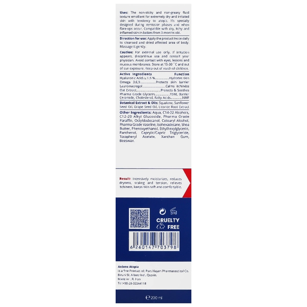 لوسیون بدن آتوپیا آردن یک محصول تخصصی برای مرطوبسازی و آبرسانی پوست است که بهخصوص برای پوستهای خشک، اگزمایی و آتوپیک طراحی شده است. این لوسیون با فرمولاسیون قوی از مواد گیاهی و مرطوبکنندهها، به حفظ رطوبت و تسکین علائم ناشی از خشکی کمک میکند.