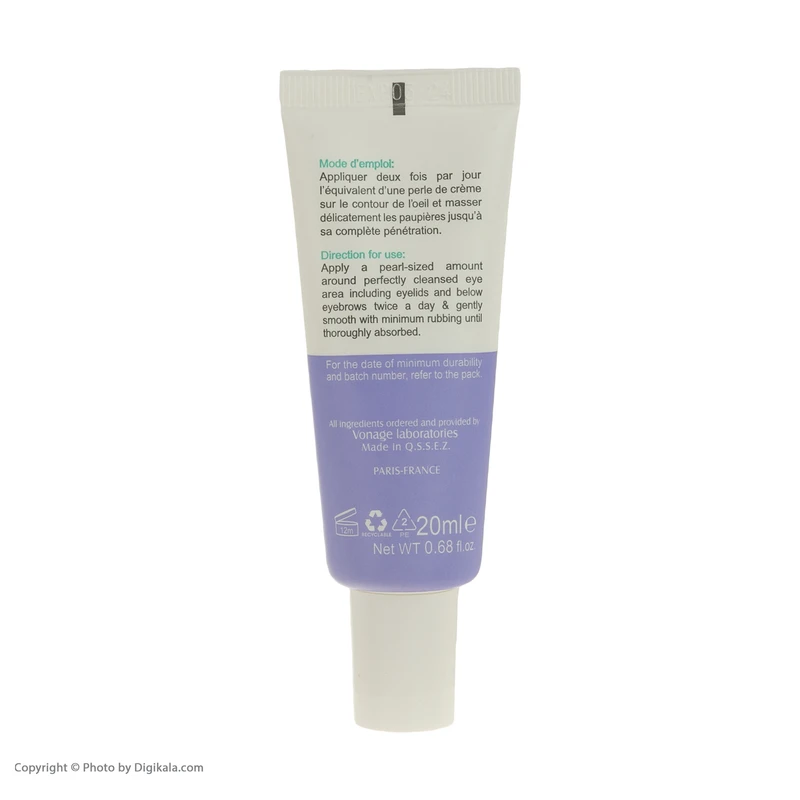 ابتدا ناحیه دور چشم را با شوینده کرمی حاوی پرو ویتامین B5 پاکسازی کرده و سپس با حوله تمیز خشک کنید. مقدار تقریبی به اندازه یک نخود از کرم دور چشم را در صبح و شب به ناحیه پوست تمیز دور چشم بزنید. سپس با نوک انگشتان، به آرامی از داخل به خارج ماساژ دهید تا جذب شود.