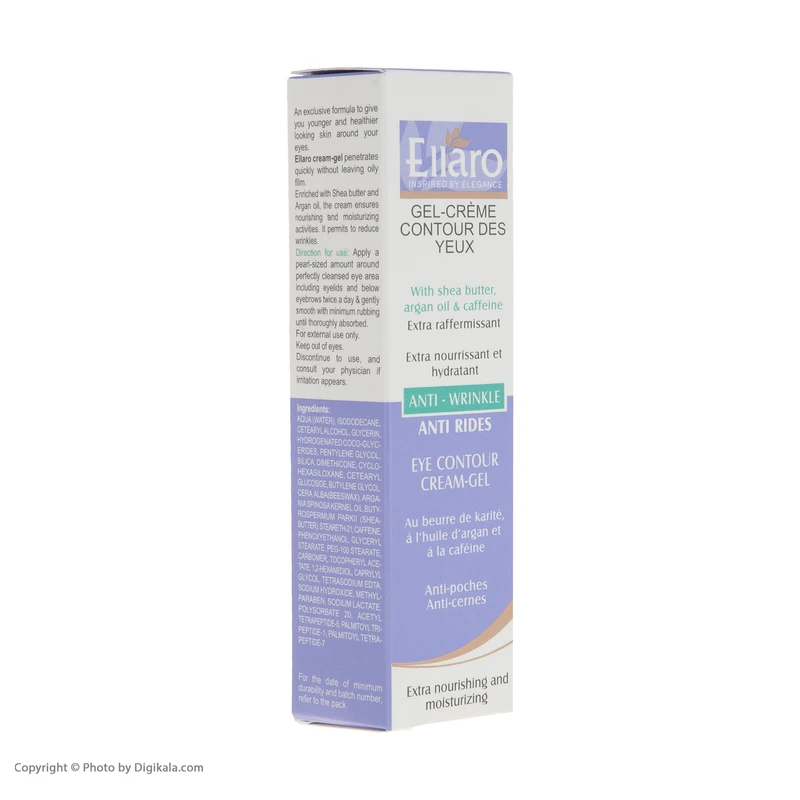 این کرم حاوی ماده مؤثری به نام ماتریکسیل 3000 است که با تحریک کلاژنسازی، به استحکام و قوام پوست دور چشم کمک میکند. کرم دور چشم ضد چروک الارو همچنین حاوی کافئین برای افزایش گردش خون و کاهش تیرگی و پف زیر چشم است.
