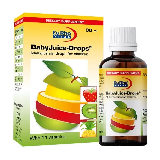 قطره بیبی جویس یوروویتال دارای ترکیبی متوازن از ۱۳ نوع ویتامین است که در بستهبندی مناسب همراه با قطرهچکان ارائه میگردد. ویتامین D به رشد و توسعه سالم استخوانها در کودکان کمک میکند. همچنین ویتامینهای D، C، B6، B12، A و فولیک اسید در تقویت عملکرد طبیعی سیستم ایمنی نقشی حیاتی ایفا میکنند. ویتامینهای گروه B به بهبود متابولیسم انرژی و کاهش خستگی و ضعف کمک مینمایند. علاوه بر این، ویتامینهای D، A و فولیک اسید در فرآیند تقسیم و تمایز سلولی نیز اهمیت دارند.