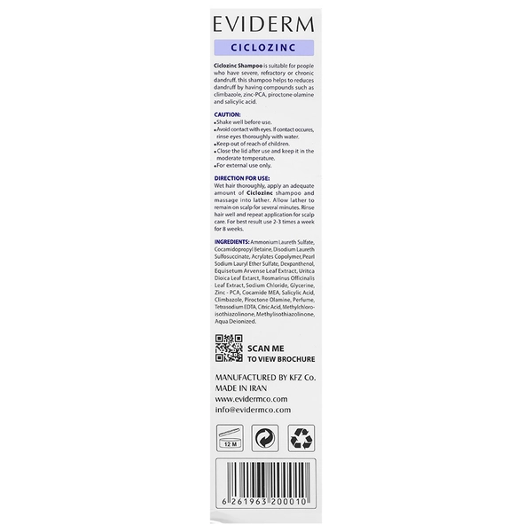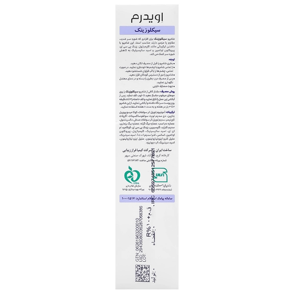 شامپو ضد شوره سیکلوزینک اویدرم با ترکیبات مؤثر و خاص خود، به شما در رفع مشکلات شوره و بهبود سلامت موها کمک خواهد کرد.