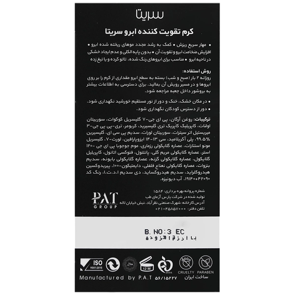 - کرم تقویت کننده ابرو سریتا صرفاً برای مصرف خارجی روی پوست ناحیه ابرو است.