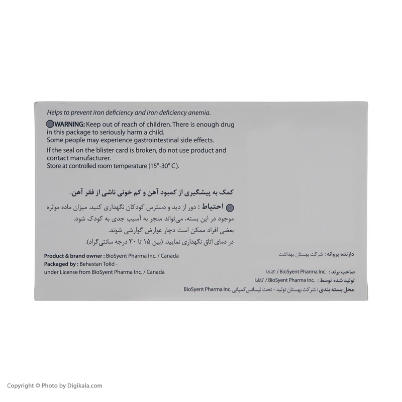 BioSyent یکی از شرکتهای داروسازی پیشرو و مستقل در کانادا است که در سال 2012 شاهد رشد سالانه خیرهکننده 70% در طول سه سال گذشته بوده و در دو سال متوالی 2012 و 2013 در فهرست 50 کمپانی برتر TSX Venture قرار گرفته است. آهن به عنوان یک ریزمغذی حیاتی برای بیش از یک قرن شناخته شده و کمخونی ناشی از فقر آهن به عنوان شایعترین بیماری ناشی از کمبود تغذیه در جهان محسوب میشود. آهن فرامکس 100، یک مکمل آهن خوراکی با فرمول پایدار پلی ساکاریدی است که با استفاده از فناوری ویژهای در پوشش پلی ساکارید (نشاسته) تولید شده است. این پوشش به آهن اجازه میدهد تا بدون آسیب از معده عبور کند و پس از آن در روده کوچک بهخوبی جذب و وارد جریان خون شود. این محصول تحت لیسانس کمپانی Biosyent Pharma Inc، کشور کانادا تولید و در شرکت بهستان بستهبندی میشود.