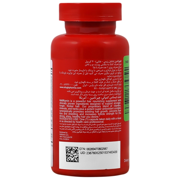 کپسول تقویت کننده موی هیرتامین یک مکمل قوی است که با ترکیبی از مواد مغذی طراحی شده است و اثربخشی آن در علم پزشکی به اثبات رسیده است. این محصول به محافظت از موها و تقویت فولیکول‌های مو کمک می‌کند. حاوی ویتامین‌های A، C، D و گروه B است که موجب ضخامت بیشتر موها شده و از بروز شوره و اختلال در رشد مو جلوگیری به عمل می‌آورد.
