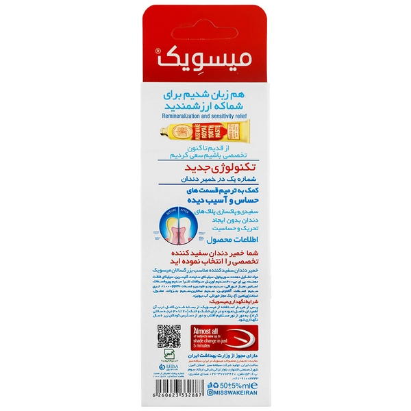 خمیر دندان سفید کننده 5 دقیقه ای میسویک