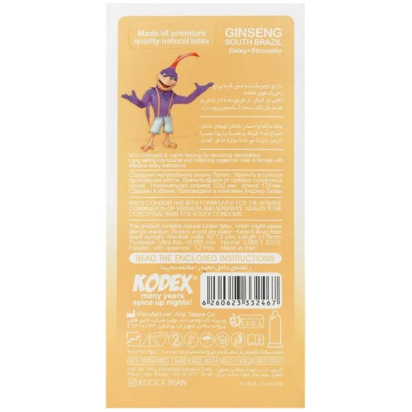 کاندوم جینسینگ کدکس بسته 12 عددی