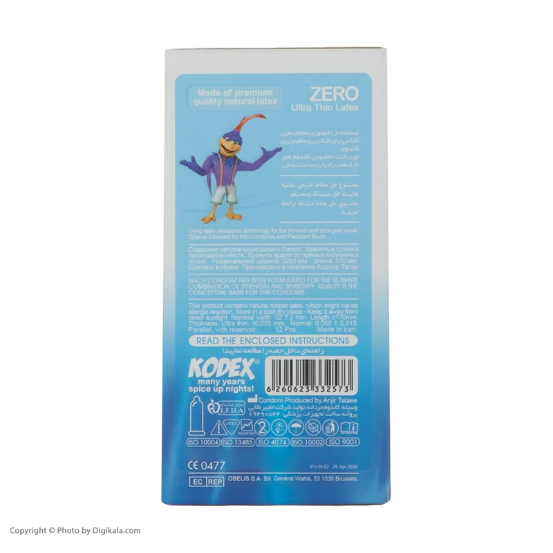 کاندوم Zero Invisible کدکس با استفاده از تکنولوژی مقاومسازی لاتکس ساخته شده که به نازکی و در عین حال استحکام بالا میانجامد. این کاندوم به بهترین کیفیت لاتکس طبیعی مجهز است و علاوه بر این، لوبریکانت موجود در آن بوی خوشایندی دارد که تجربه بینظیری را ارائه میدهد.