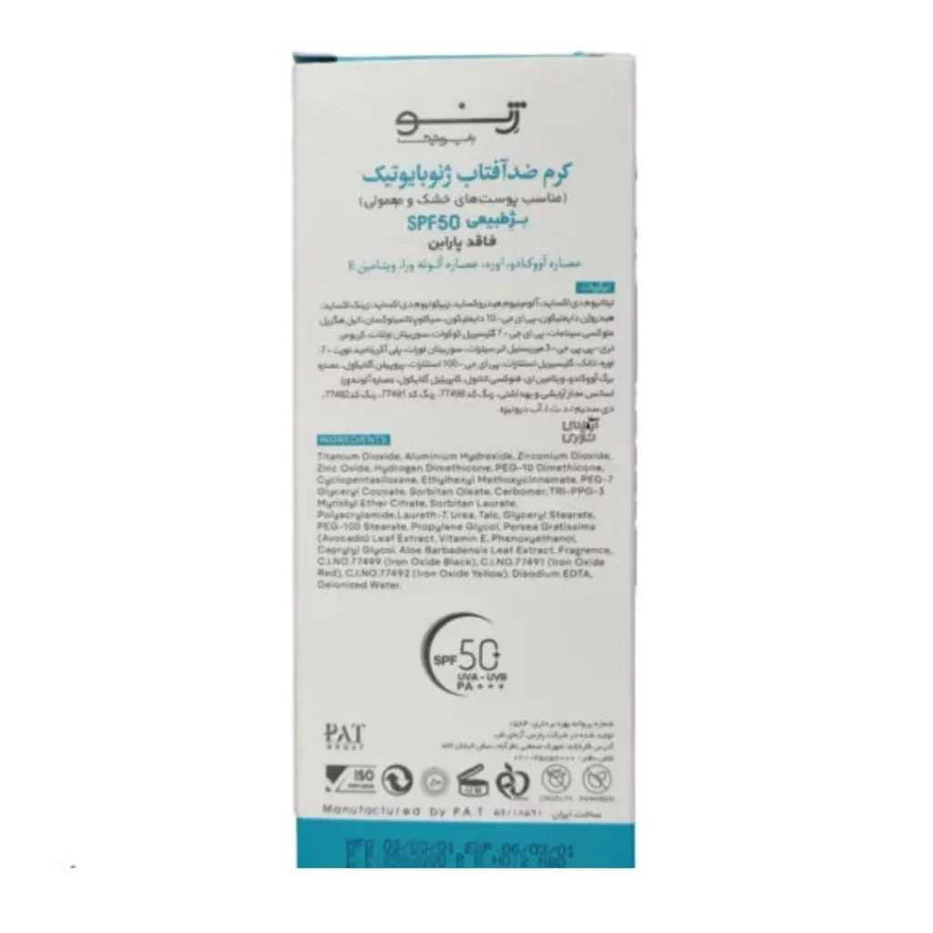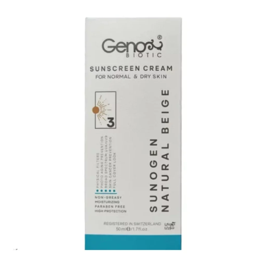 کرم ضد آفتاب بژ طبیعی پوست خشک SPF50 سانوژن ژنوبایوتیک