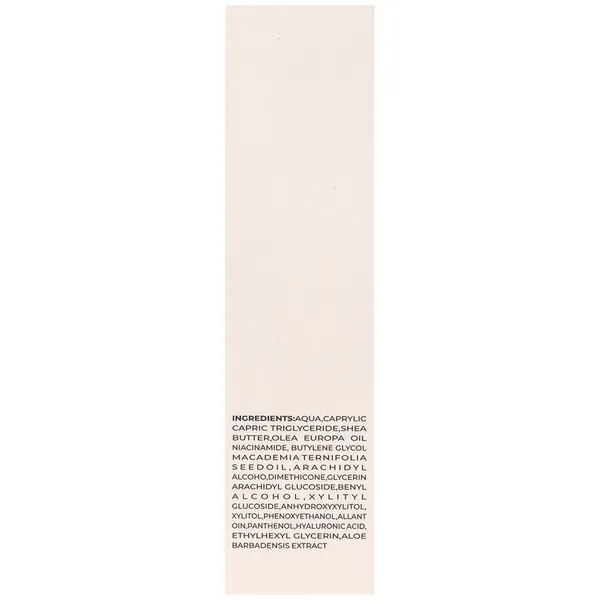 این محصول شامل آبر، کاپریلیک/کاپریک تری گلیسرید، شی باتر، روغن زیتون، نیاسین آمید و هیالورونیک اسید میباشد، که همگی در بهبود کیفیت پوست مؤثر هستند.