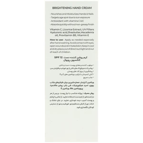 - روشن کننده تیرگی و لک های دست با بهره گیری از ویتامین C و عصاره شیرین بیان