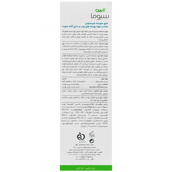مایع شوینده غیرصابونی صورت پوست های چرب و آکنه دار سبوما