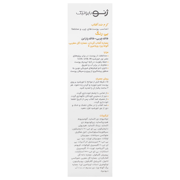 کرم ضد آفتاب بی رنگ پوست های چرب SPF50 سانو ژن ژنوبایوتیک