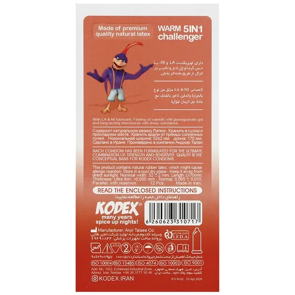 ویژگیهای کاندوم 5 کاره گرم کدکس